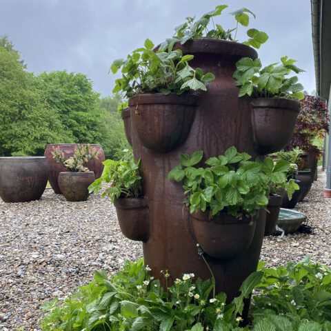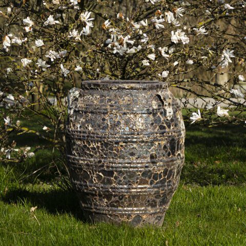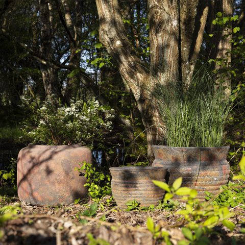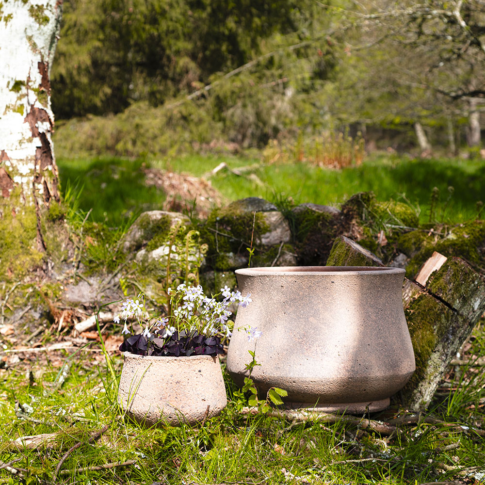 Additionally, the clay is mixed with chamotte (small grains of burned stoneware), allowing a production of much larger pots than with regular clay. Finally, the high firing temperature of 1200 degrees makes the pots highly durable and frost-resistant.