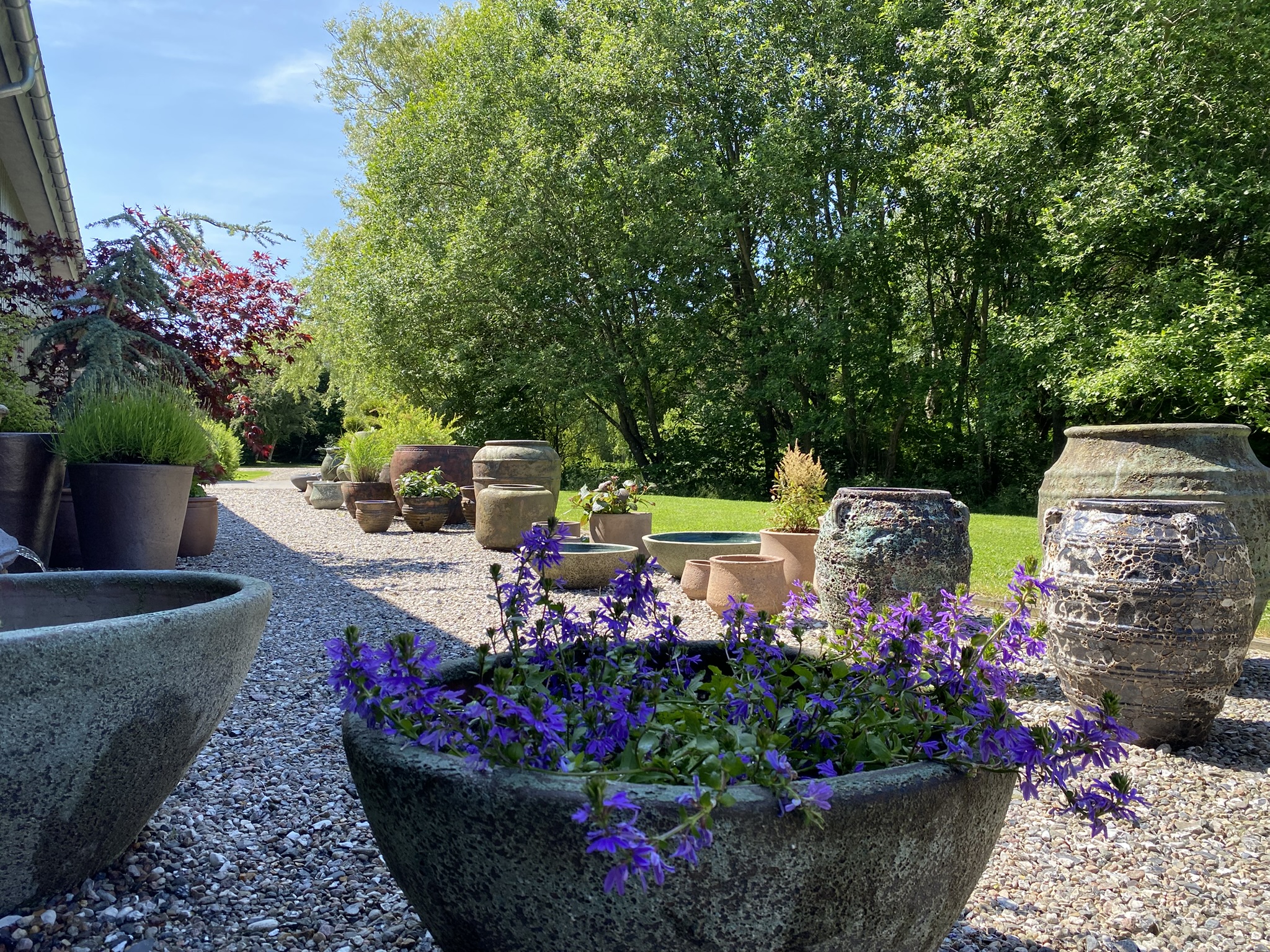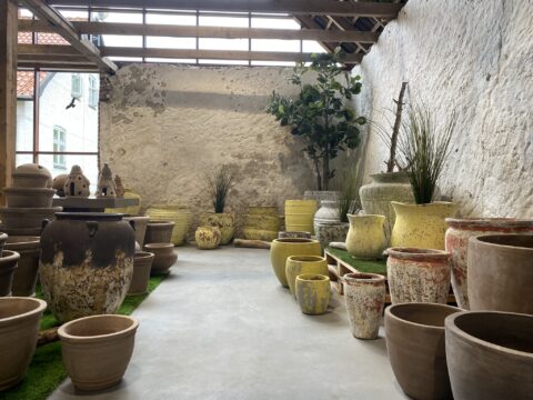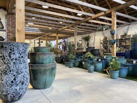 In 2018, we restored the old barn on the property, which now serves as a bright and spacious showroom. This well-lit space allows us to display all of our pots in all sizes. We also enjoy using our beautiful outdoor areas to showcase our collection of large pots and fountains in their natural environment.